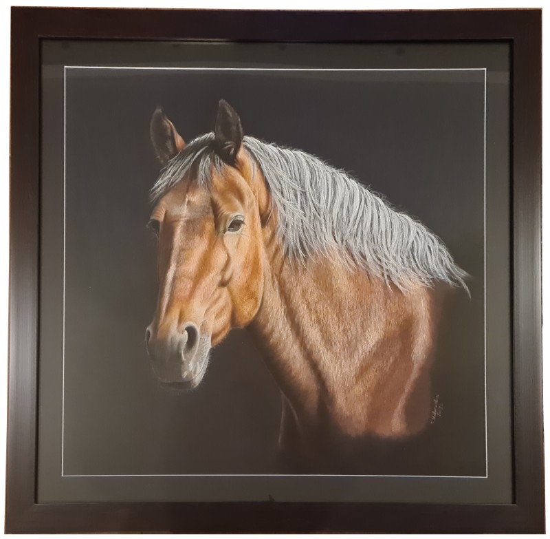 Baton, pastele, 65 x 70 cm (z oprawą 83 x 88 cm)
